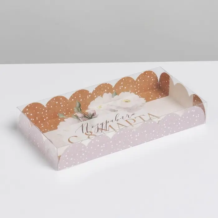 Коробка для печенья, кондитерская упаковка с пластиковой крышкой, «8 марта», 10.5 х 21 х 3 см