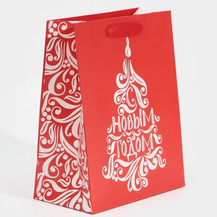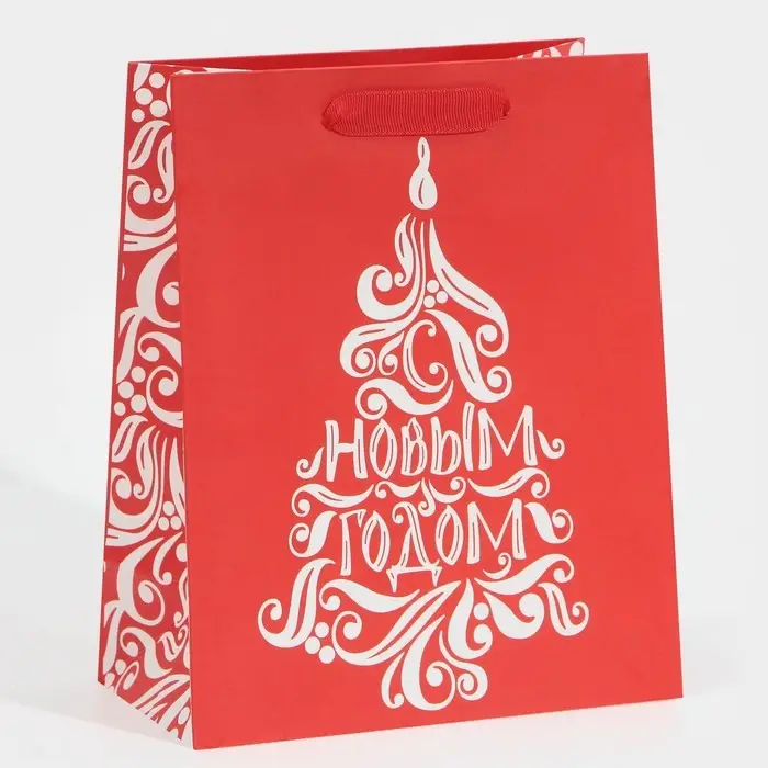 Пакет подарочный новогодний ламинированный «Расписная ёлка», MS 18 х 23 х 10 см