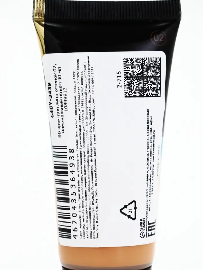 BB крем для лица оттенок 02, 40 мл (Светлый)
