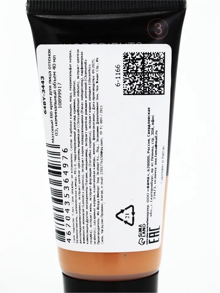 Матовый BB крем для лица оттенок 03, 40 мл (Естественный)