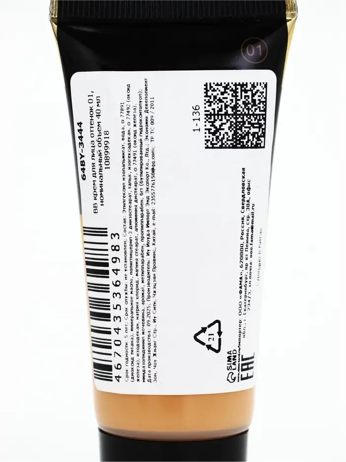 BB крем для лица оттенок 01, 40 мл (слоновая кость)