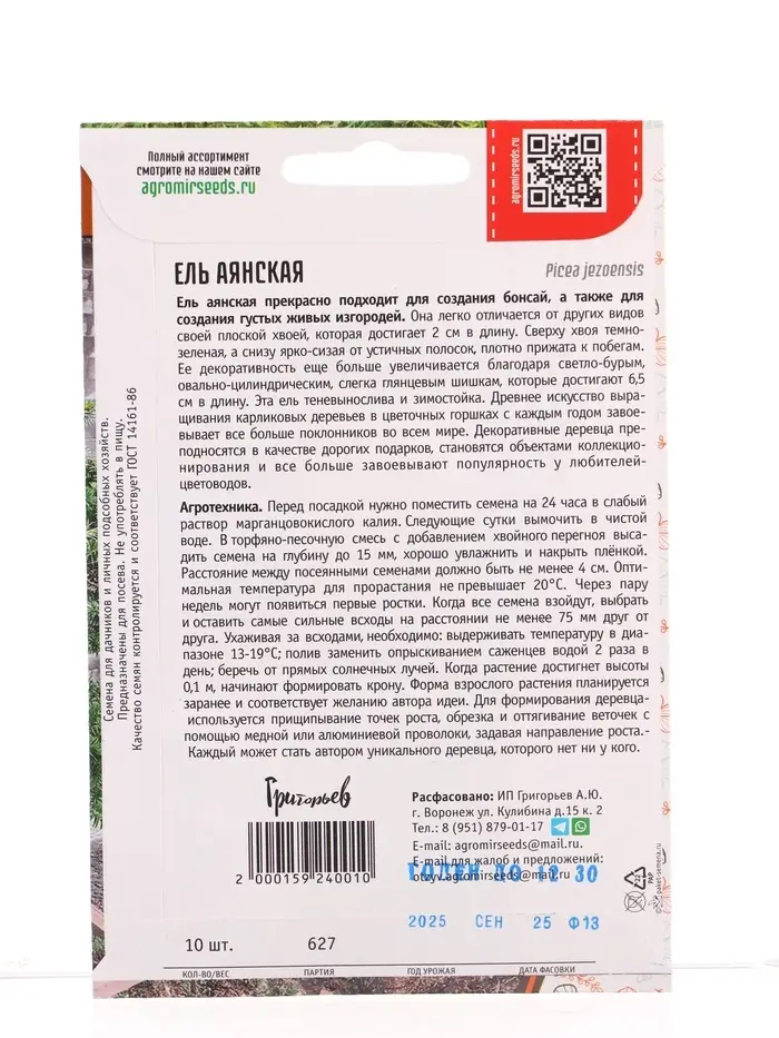 Семена цветов Ель Аянская 10 шт. 12.29 г.