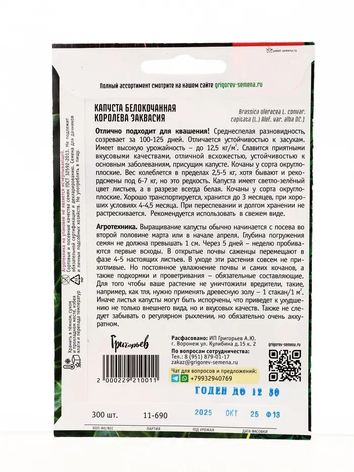 Семена цветов Капуста б/к Королева Заквасия 300шт. 12.28,29 г.