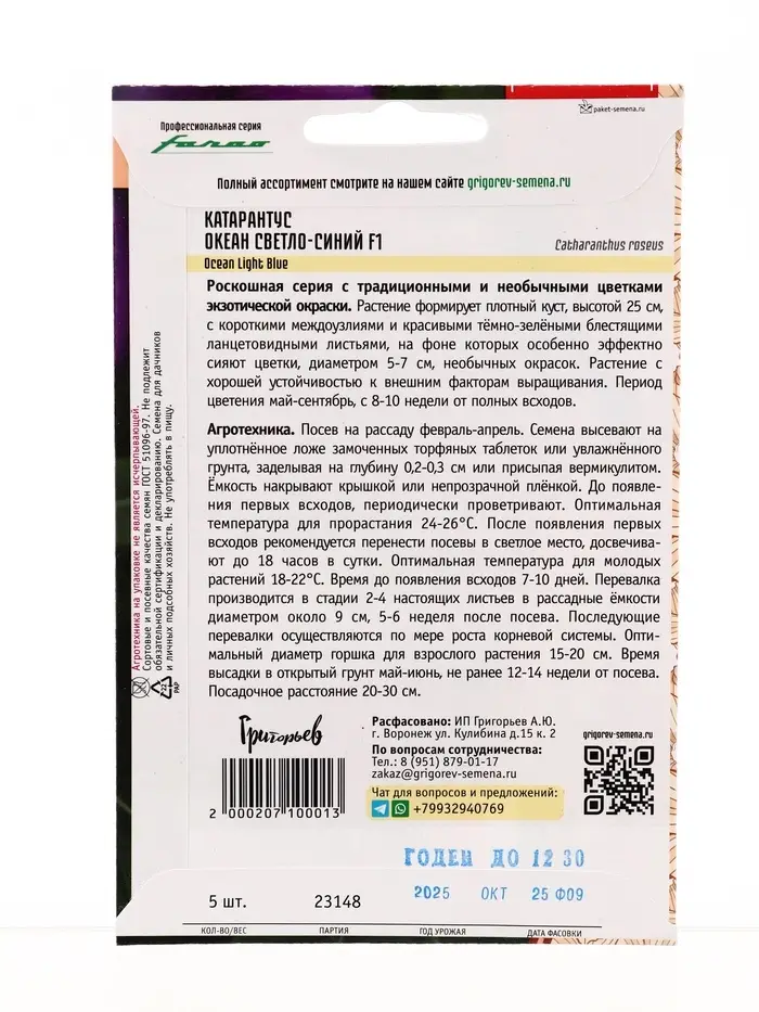 Семена цветов Катарантус Океан Light Blue розовидный 5 шт. 12.29 г.