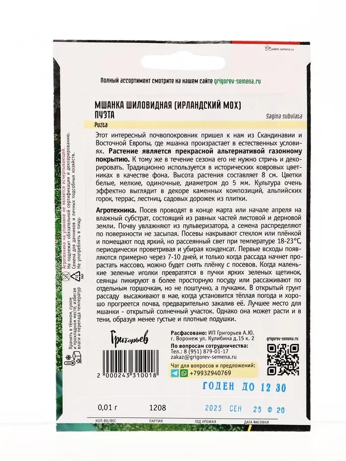 Семена цветов Мшанка Пузта шиловидная (Puzta) 0,01г. 12.29 г.
