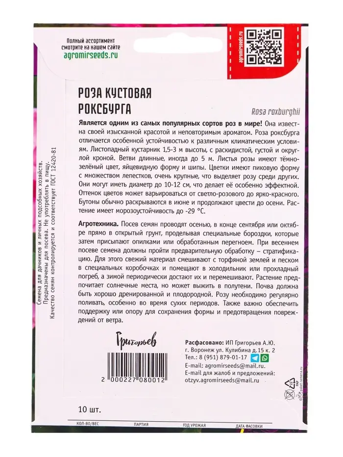 Семена цветов Роза Роксбурга кустовая 10 шт. 12.29 г.