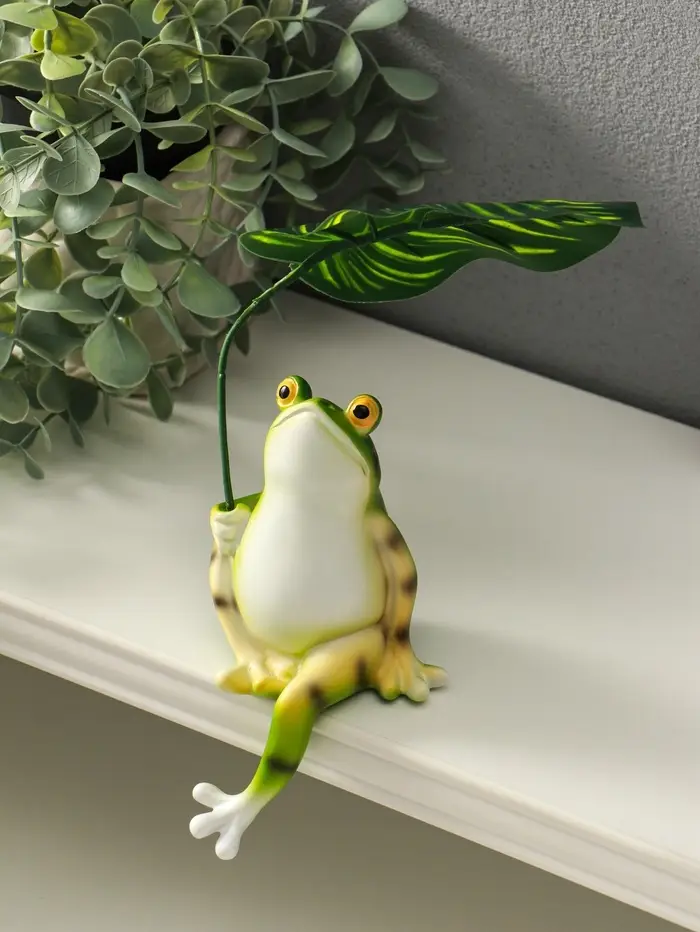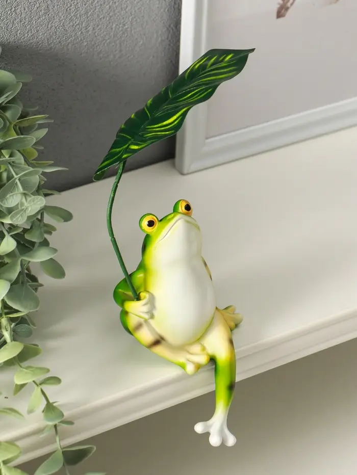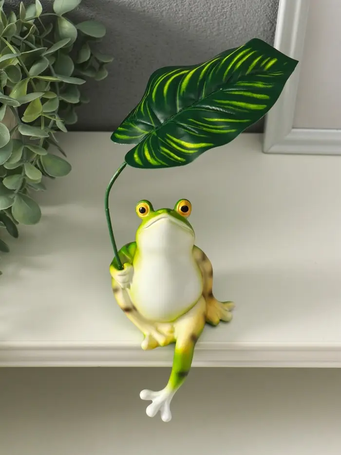 Сувенир полистоун "Лягуха под пальмовым листом" 5,8х7,5х14,5 см