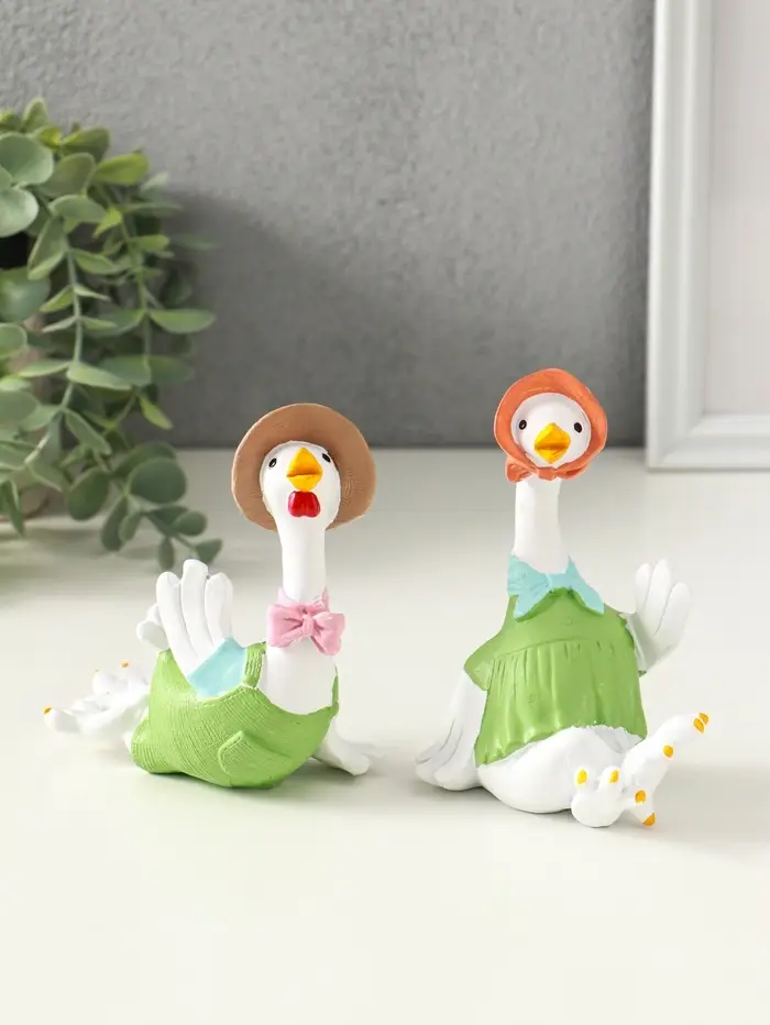 Сувенир полистоун "Гусь и гусыня в зелёных нарядах" набор 2 шт 6х11х11,7 см