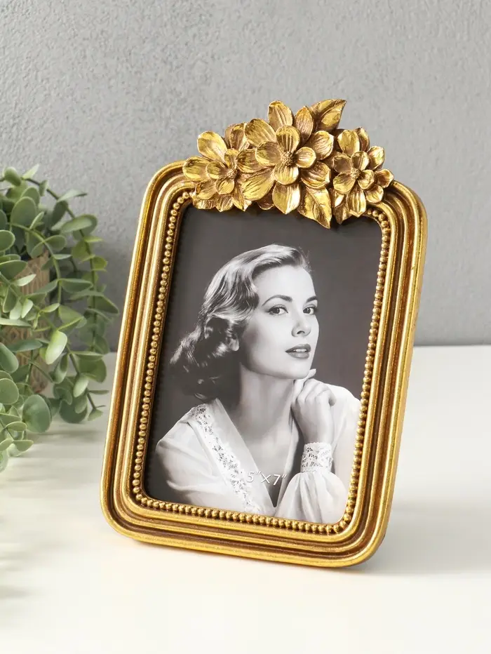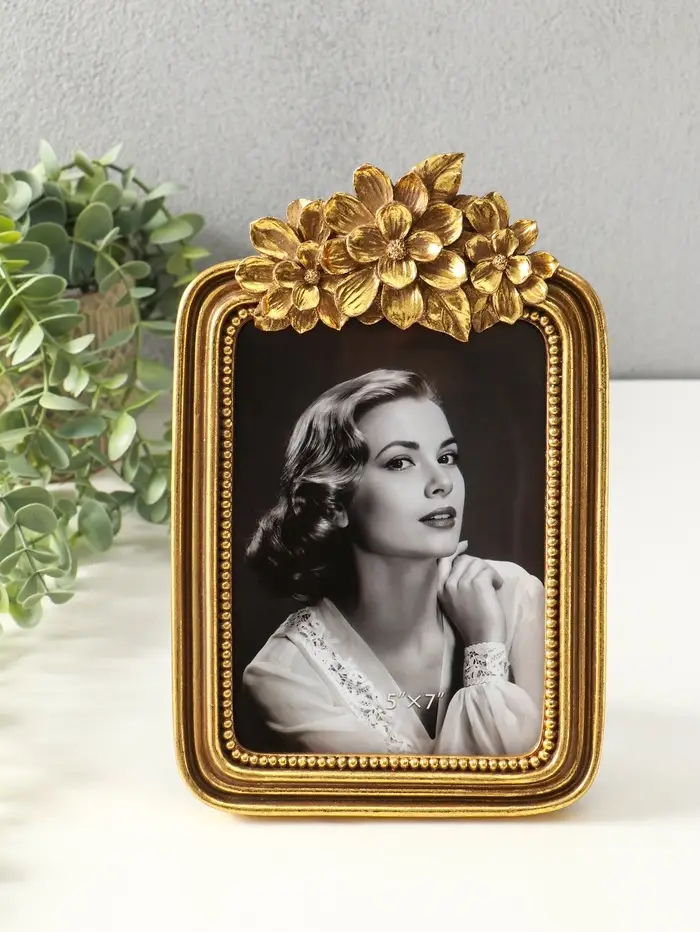 Фоторамка полистоун 13х18 см "Цветочный венок" золото 25х16,5х1,5 см