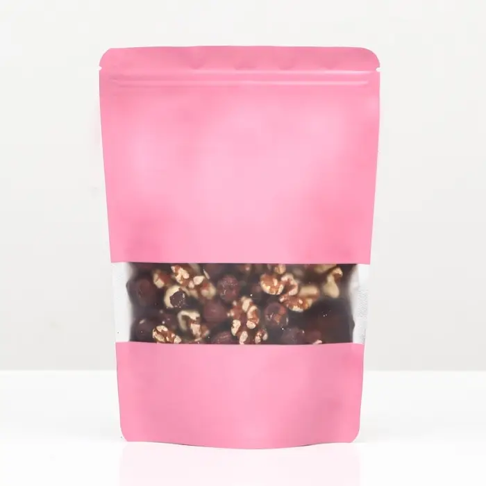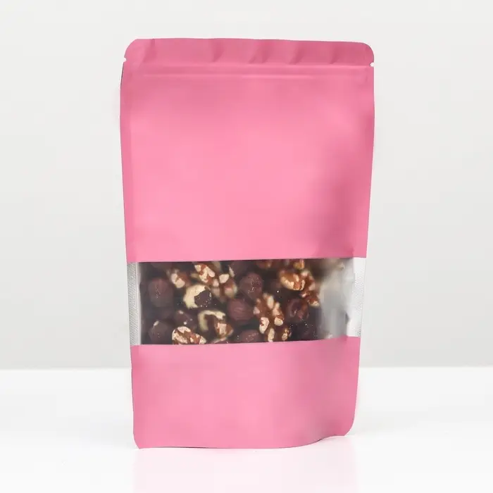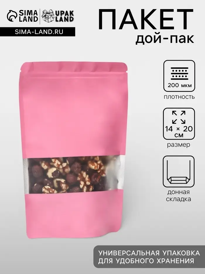 Пакет дой-пак, матовый, розовый с окном, 14×20×4 см