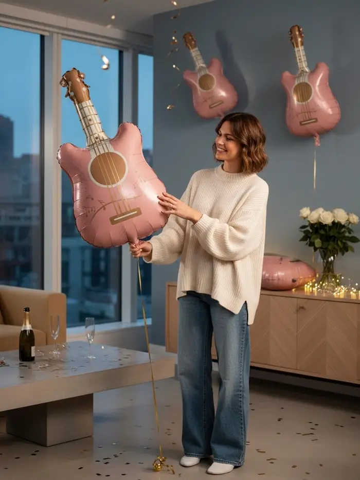 Воздушный шар фольгированный 35" "Гитара" цвет розовый