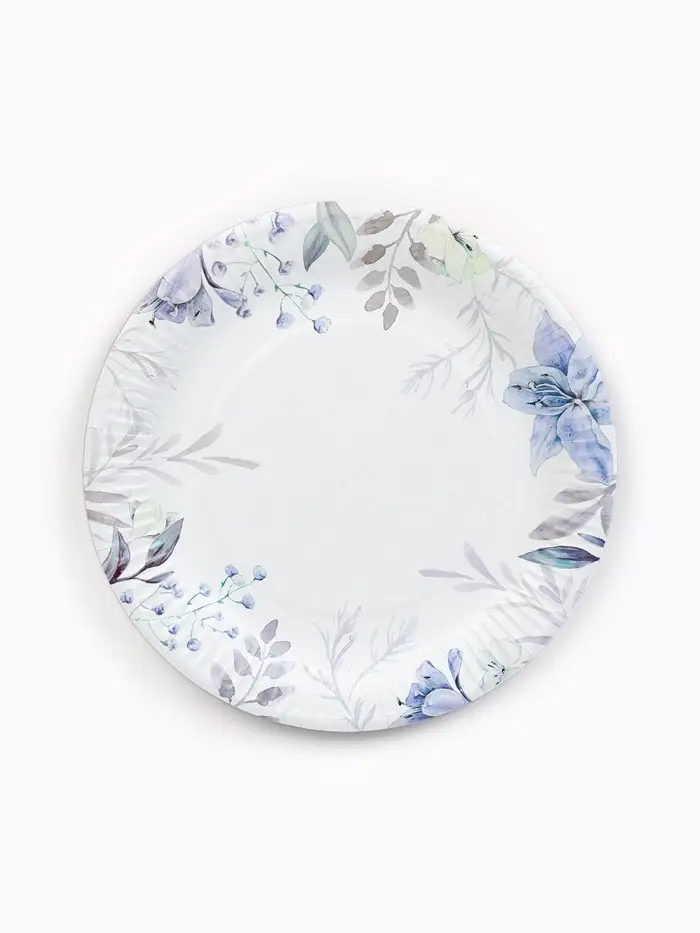 Тарелка одноразовая бумажная «Сиреневые цветы», 23 см