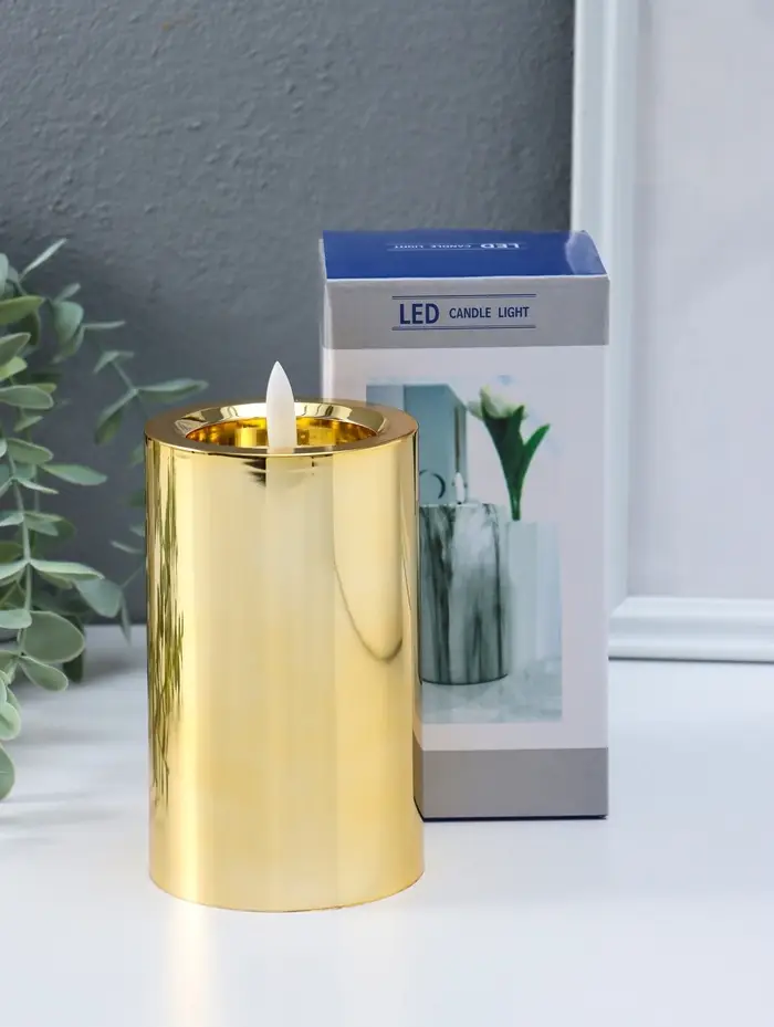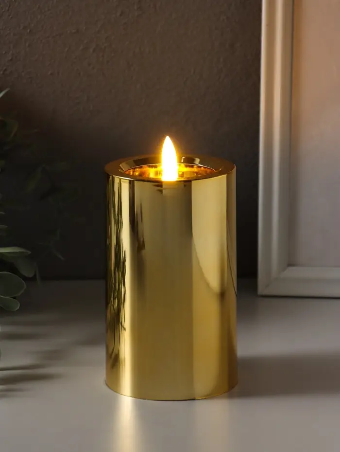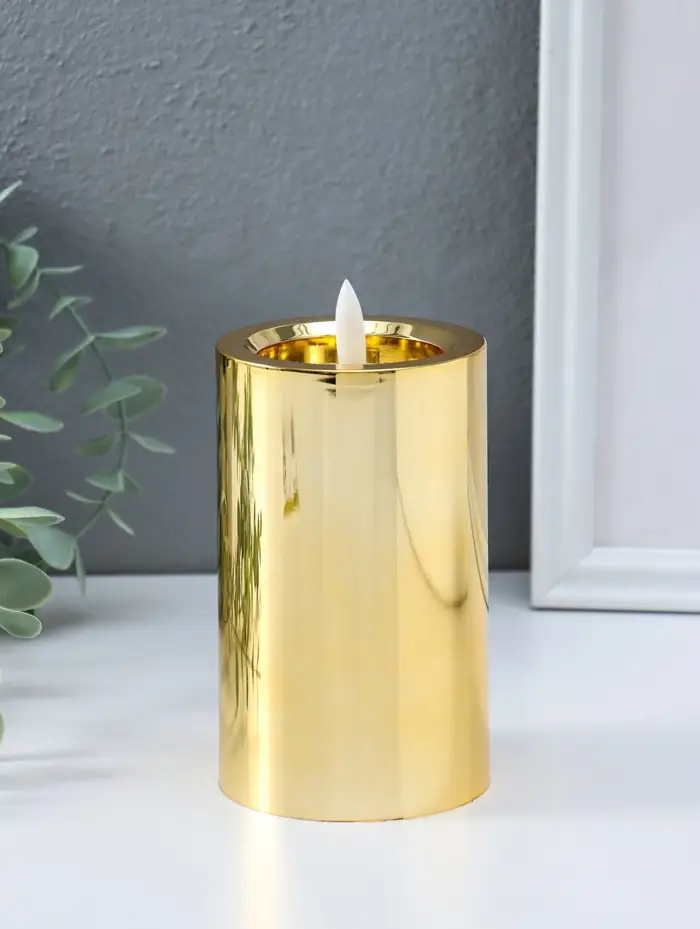 Светодиодная свеча LED "Столбик. Глянец" от батареек 3хАА, золото, мерцающая 7,5х7,5х17 см