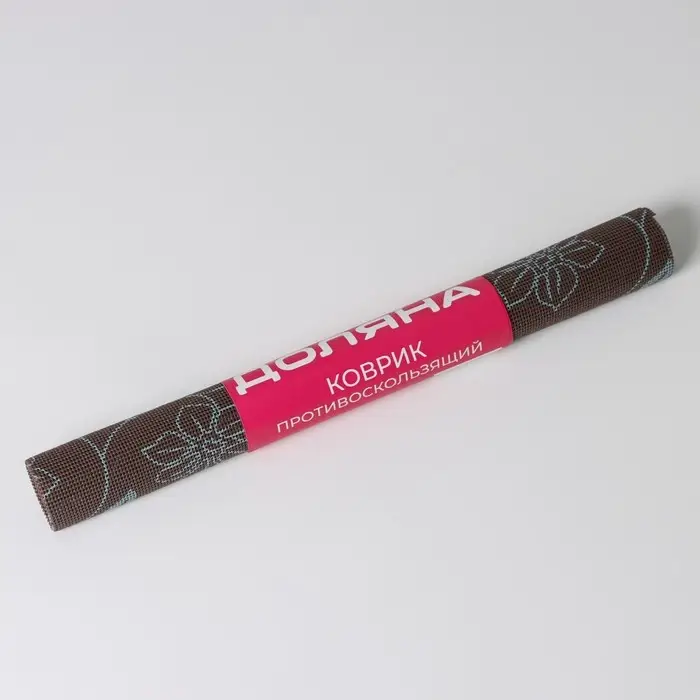 Коврик противоскользящий Доляна «Вьющиеся цветы», 45×100 см, цвет коричневый