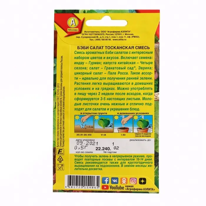 Семена Бэби салат "Тосканская смесь", 0,5 г
