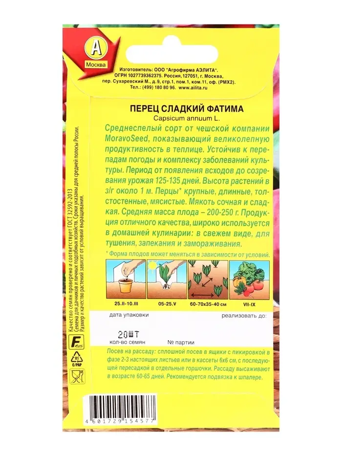 Семена Перец сладкий «Фатима», 20 шт., «АЭЛИТА»