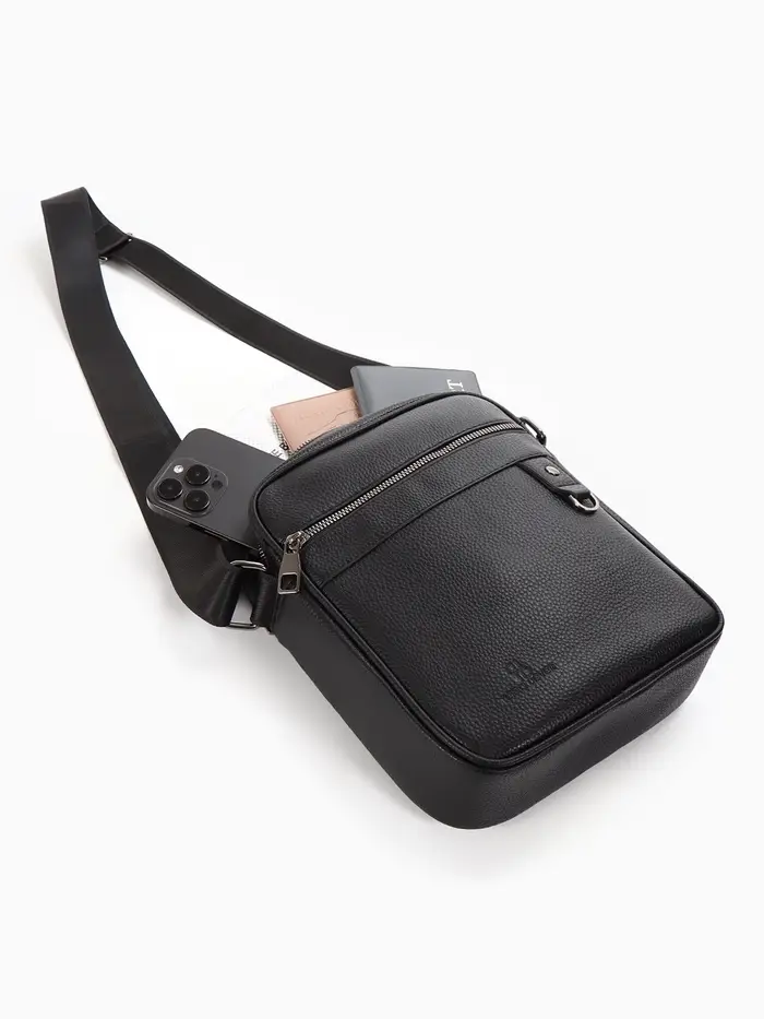 Сумка мужская, 21*7*25 см, отд на молнии, 2 н/карман, длин рег.ремень, черный
