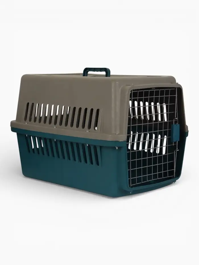 Переноска для животных пластиковая с металлической дверью 64×45×45 см, сине-белая