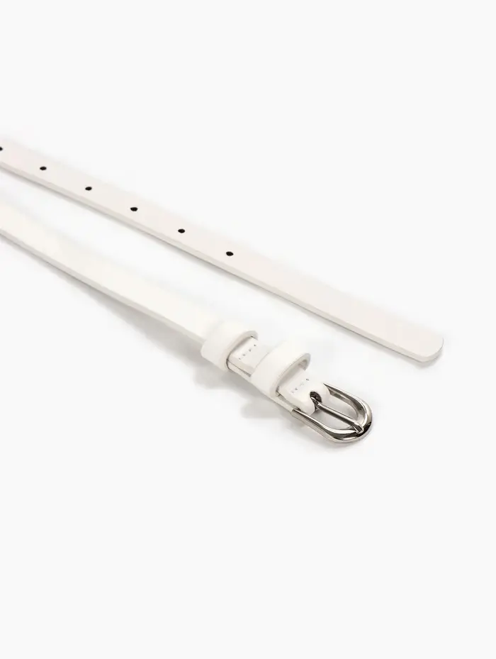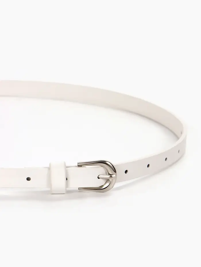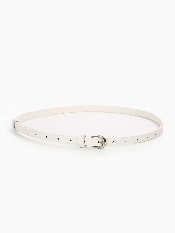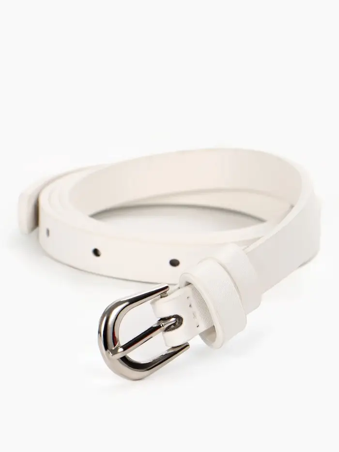 Тонкий белый ремень — это не просто функциональный аксессуар, а ключевой элемент стиля. Он визуально вытягивает фигуру, добавляет образу лёгкости и свежести. Сочетайте его с летними платьями, светлыми джинсами или классическими брюками, чтобы создать гармоничный и продуманный лук. Его сдержанный дизайн делает акцент на вашем вкусе, а не на самом аксессуаре.