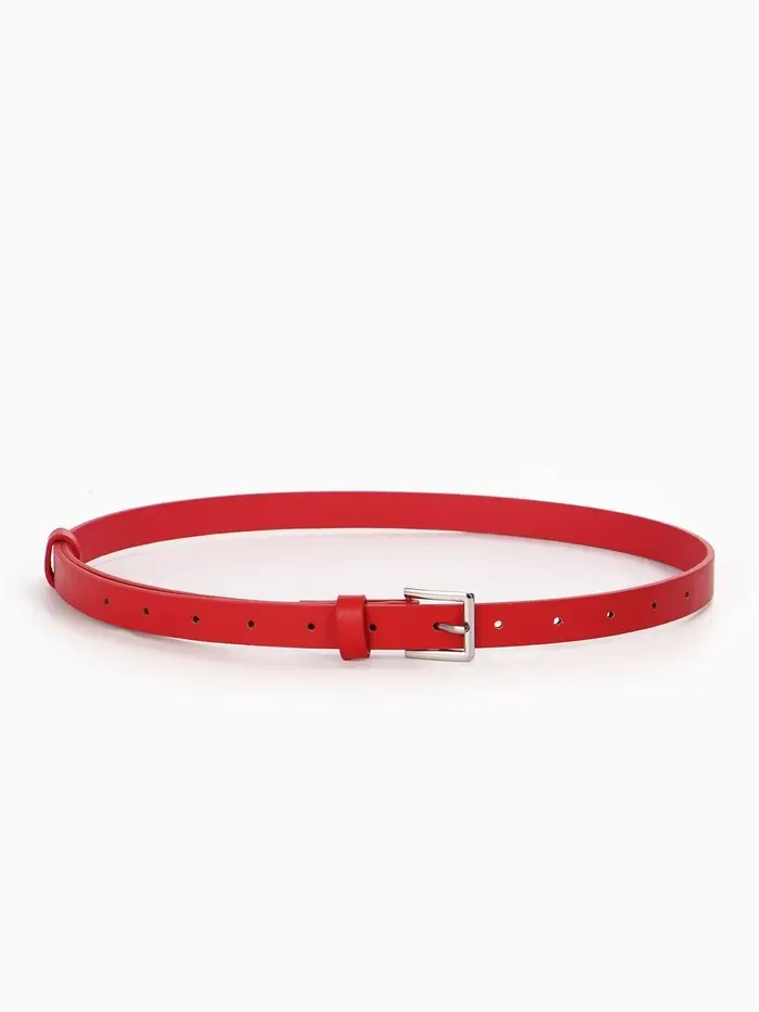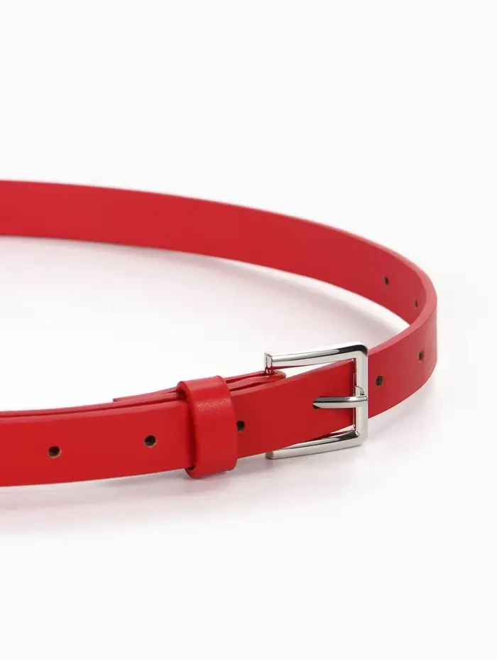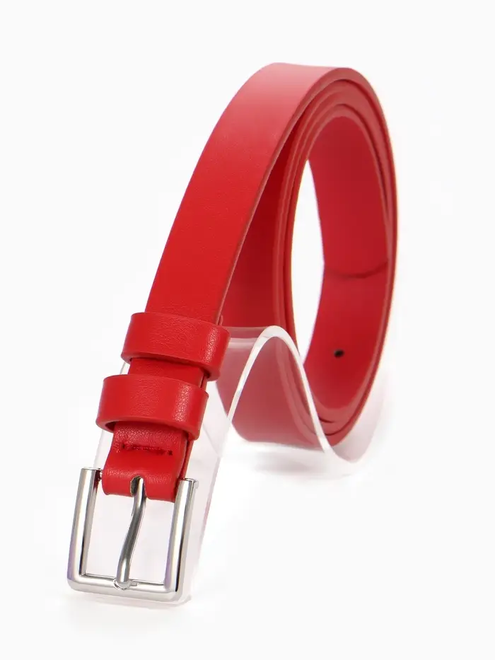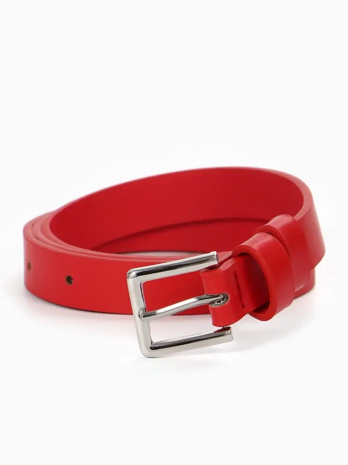 Яркий красный ремень превращает базовый комплект в продуманный лук. Он собирает образ, подчёркивает талию и добавляет уверенности. Это тот аксессуар, который работает на вас: его просто надеть, легко сочетать, и он долго сохраняет форму и цвет.