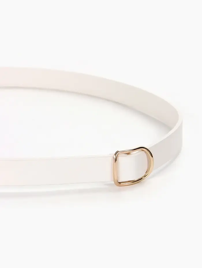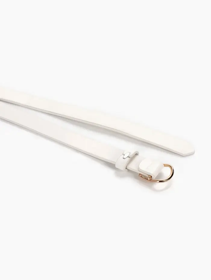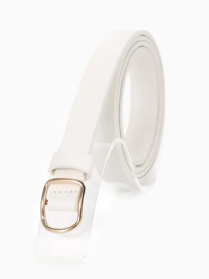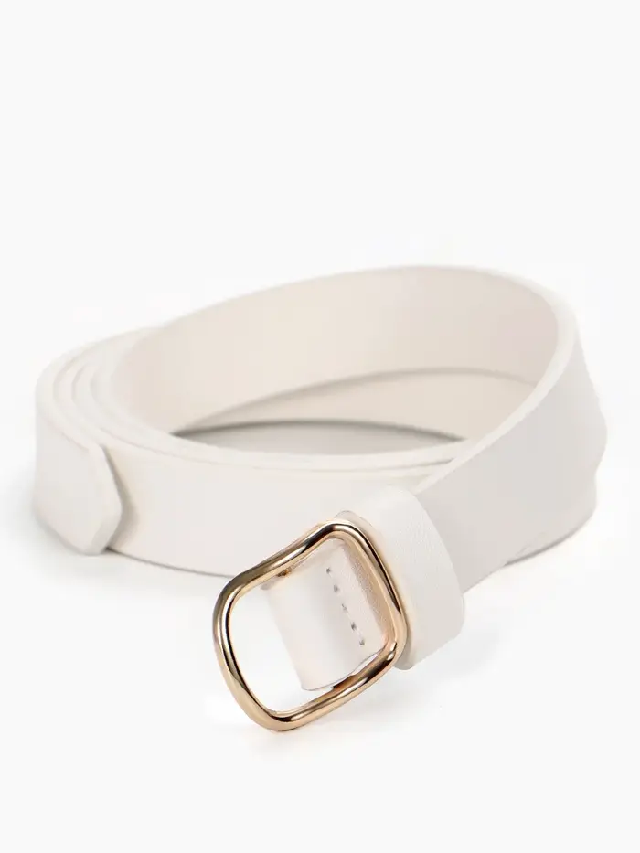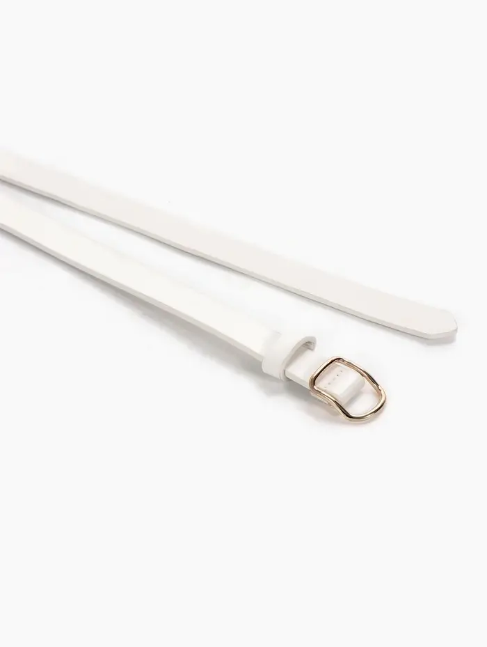 Этот белый женский ремень — акцент для вашего повседневного образа. Узкая элегантная полоска из мягкой искусственной кожи мягко подчеркнёт талию, не перетягивая её. Золотистая пряжка-затяжка делает его универсальным спутником: один лёгкий жест, и ремень идеально садится по фигуре, завершая и брючный костюм, и летнее платье.