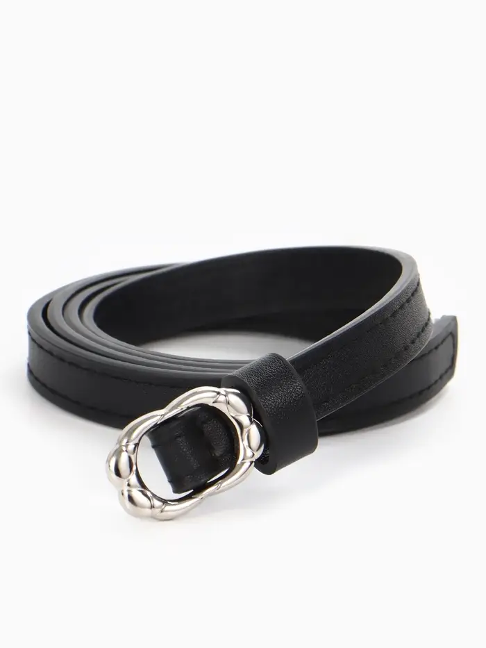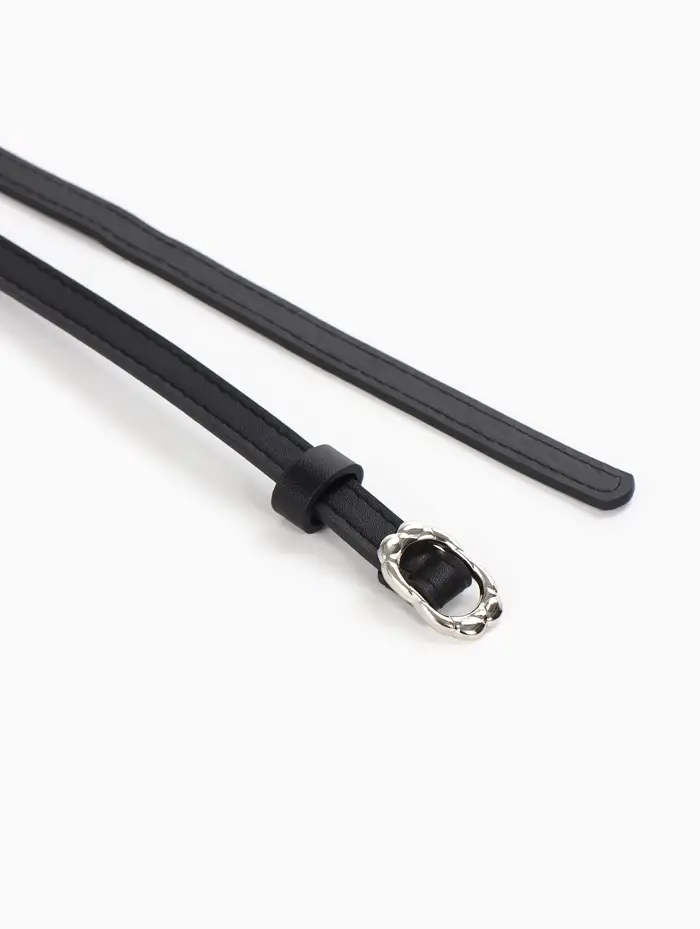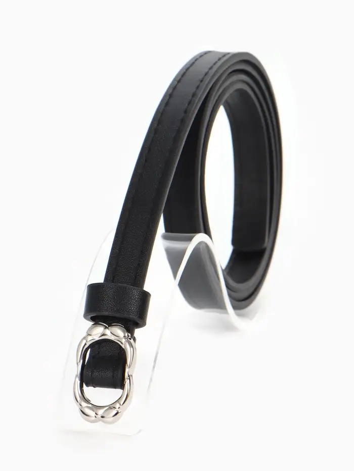 Этот узкий женский ремень — лаконичный акцент, завершающий образ. Он не перетягивает на себя внимание, а работает на вас: подчеркивает линию талии, добавляет строгости или элегантности в зависимости от выбранного наряда. Классическая черная кожа и серебристая пряжка-затяжка создают универсальный дуэт, который легко встраивается в ваш гардероб.
