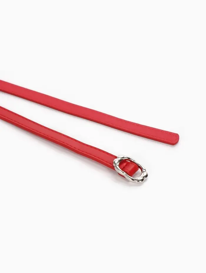 Ремень женский, узкий, 1.4×105 см, металлическая пряжка, красный
