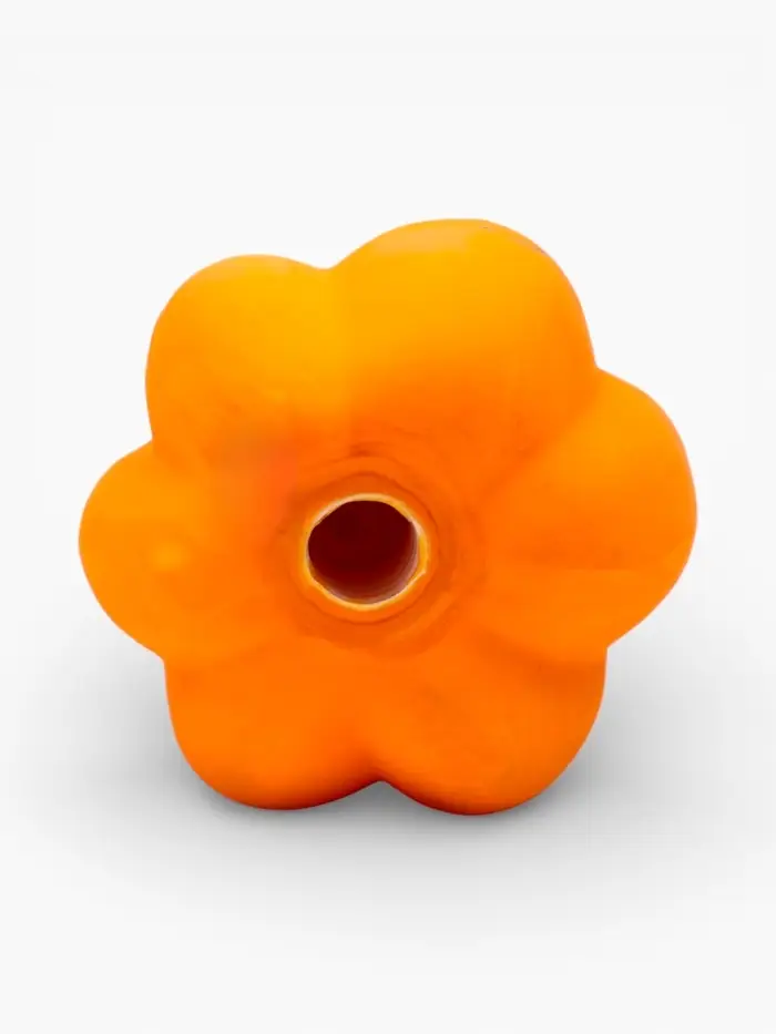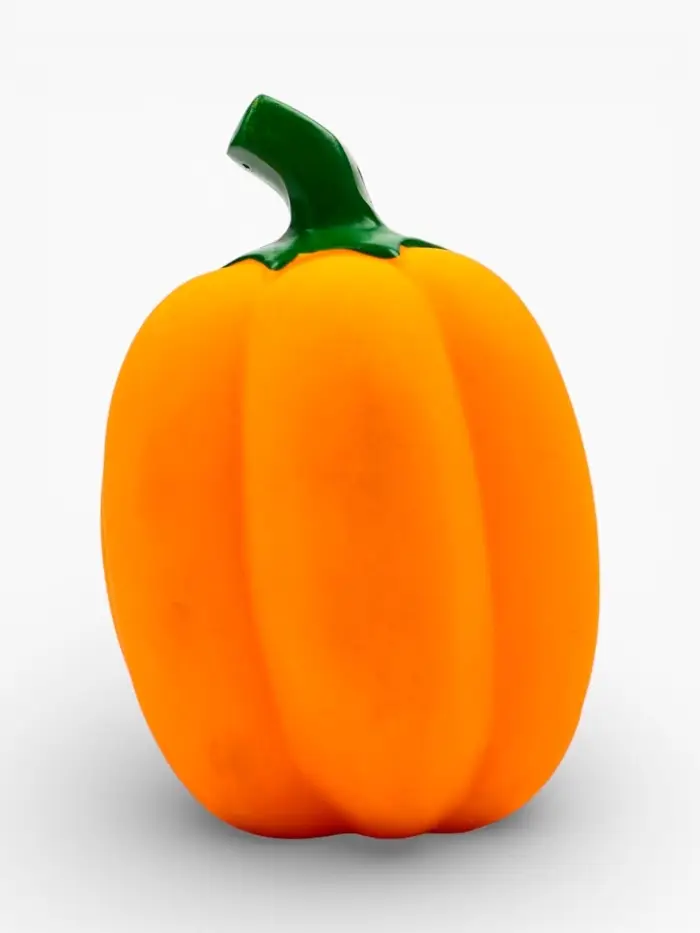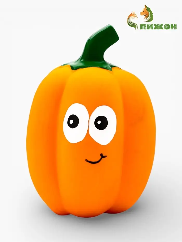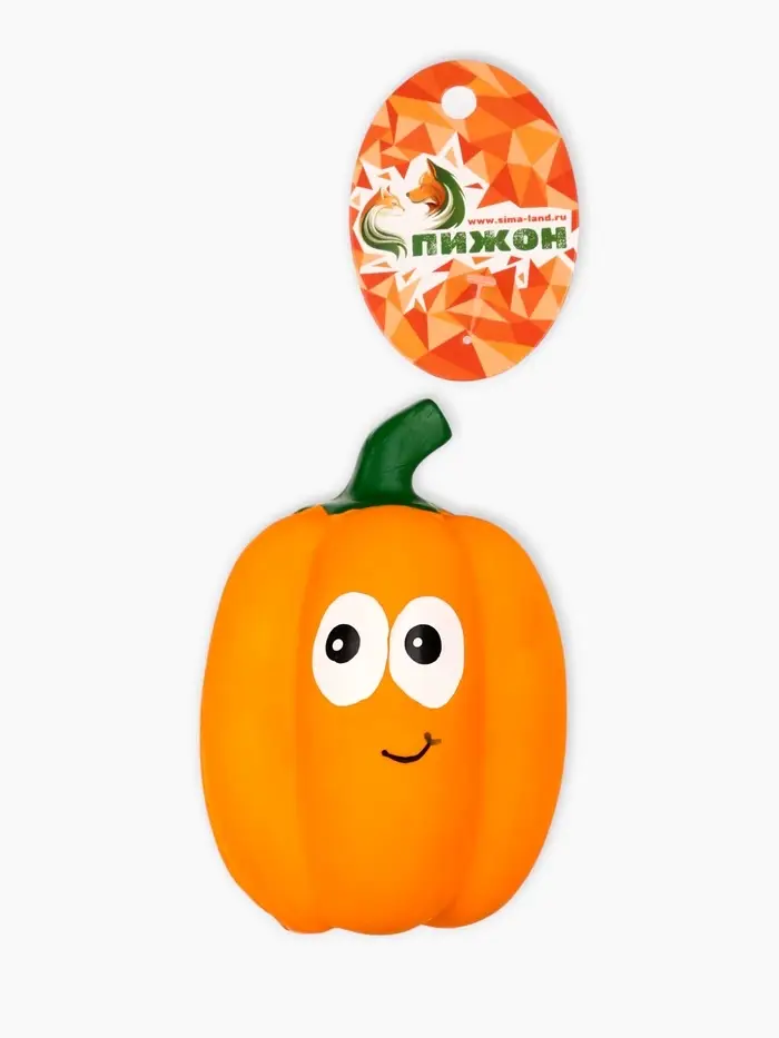 Пищащая игрушка выполнена из эластичного латекса в насыщенном оранжевом цвете. Её форма напоминает спелую тыкву — узнаваемая, дружелюбная и идеальная для игр мелких и средних собак.