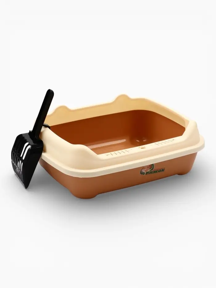 Туалет с боковым входом, бортами и совком, 36 х 28 х 14 см, коричневый