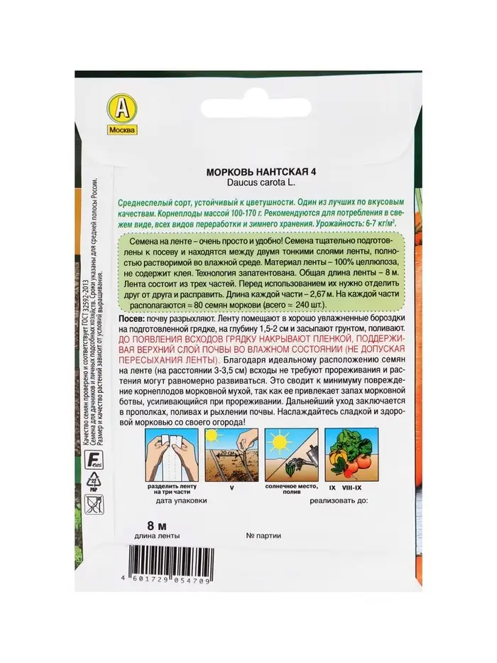 Набор Семена Морковь Нантская 4 на ленте 8 метров (1770141687) ОЗ