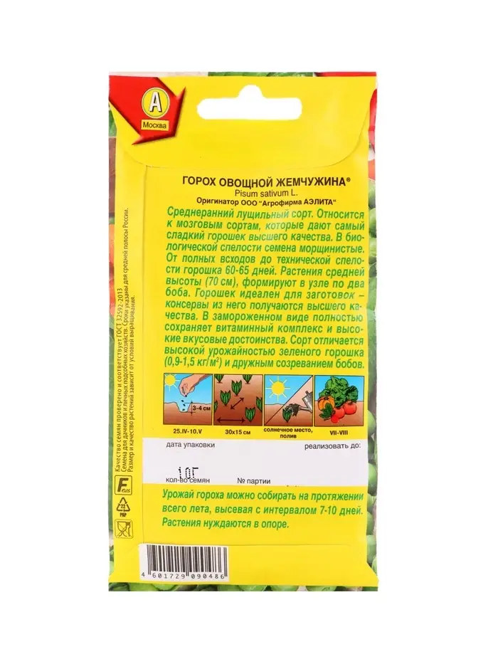 Набор "Семена Горох" (3 пакетов) Детский сахарный, Жемчужина, Медовик "Аэлита" (934494110) ОЗ 1094
