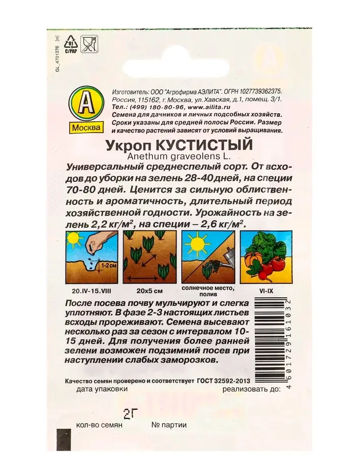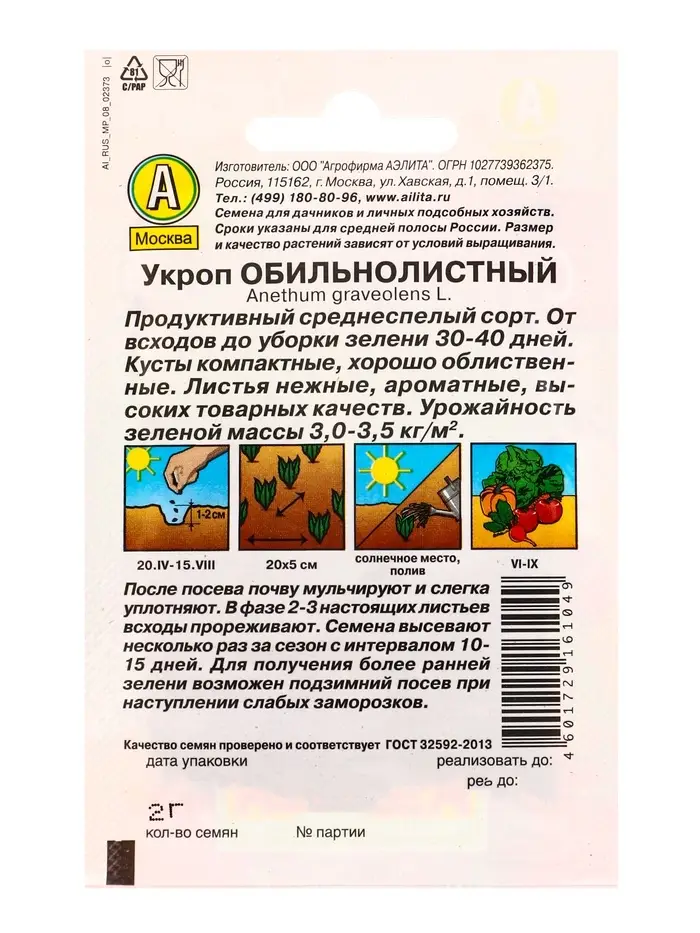 Набор Семена укропа, набор из 6-ти сортов, 12 гр. семян (1650669244) ОЗ