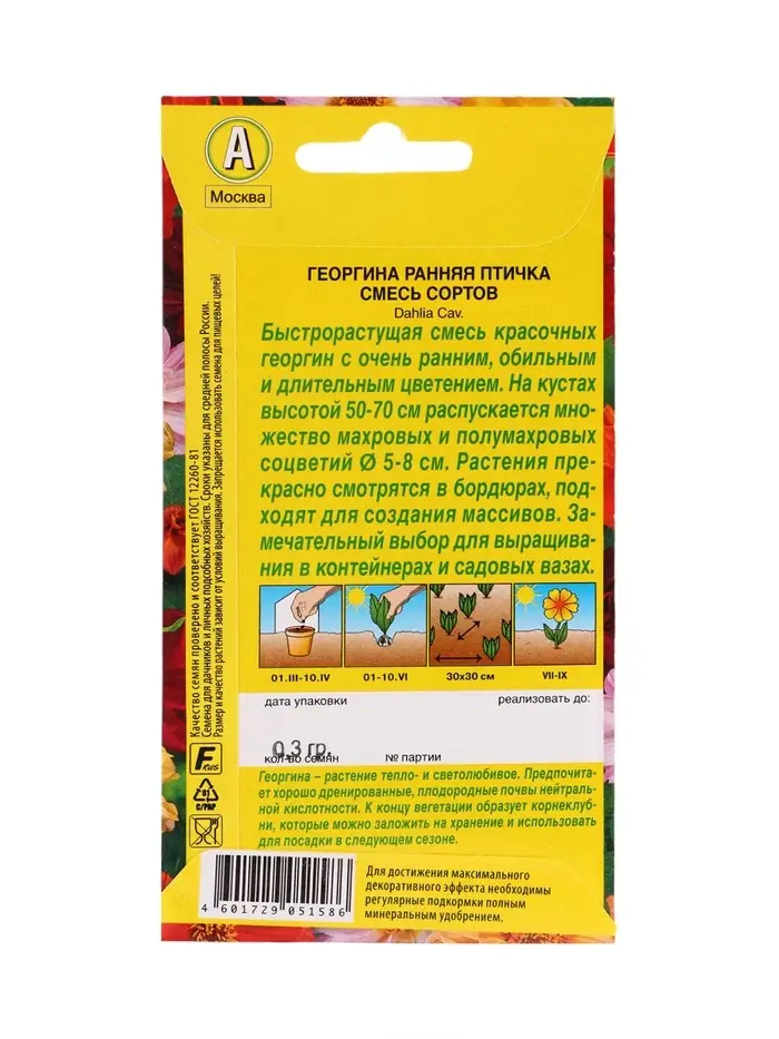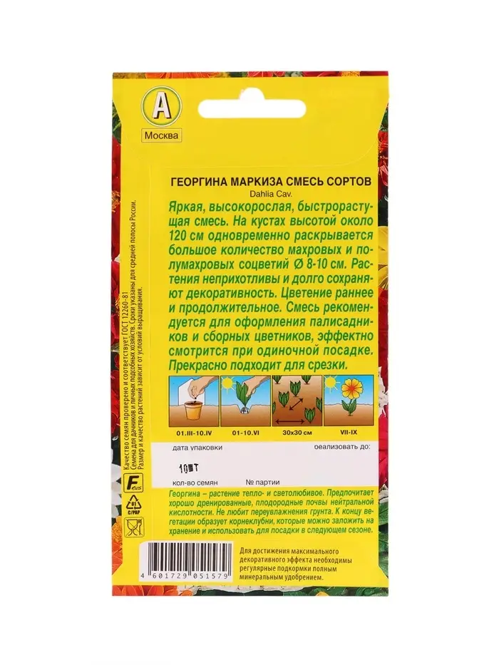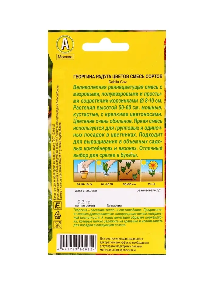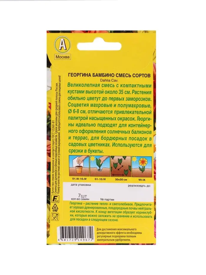 Набор Семена цветов Георгины махровая низкорослая (238760048) ВБ