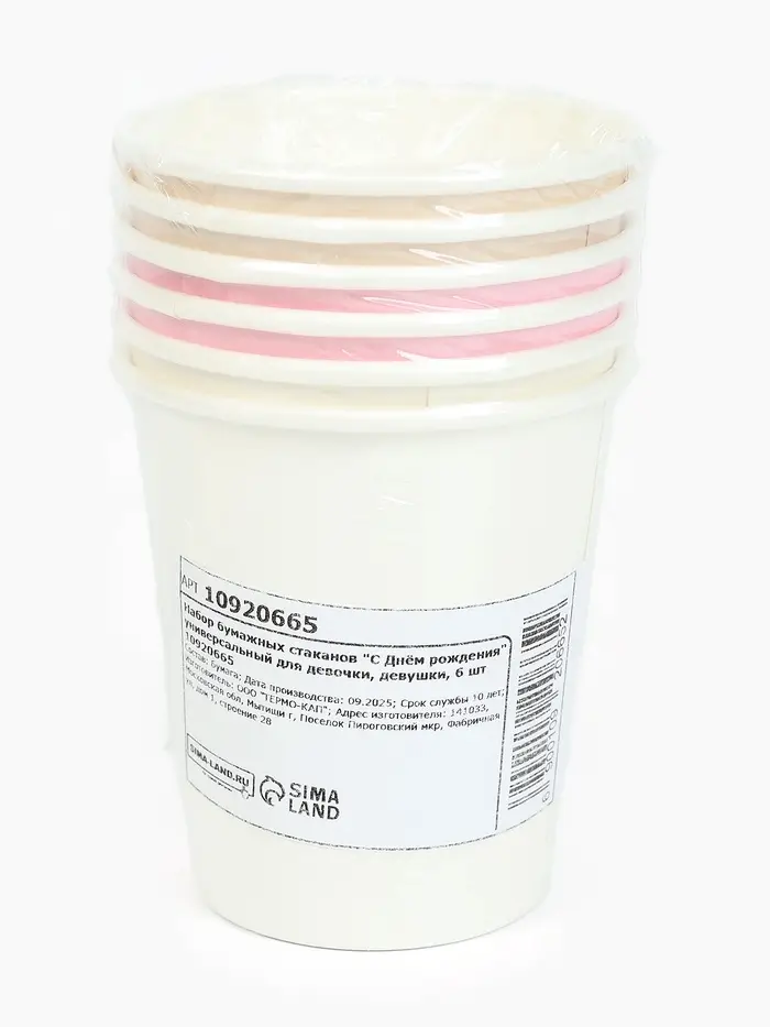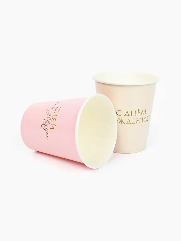 Набор стаканов бумажных «С Днём рождения» для девочки, 6 шт.