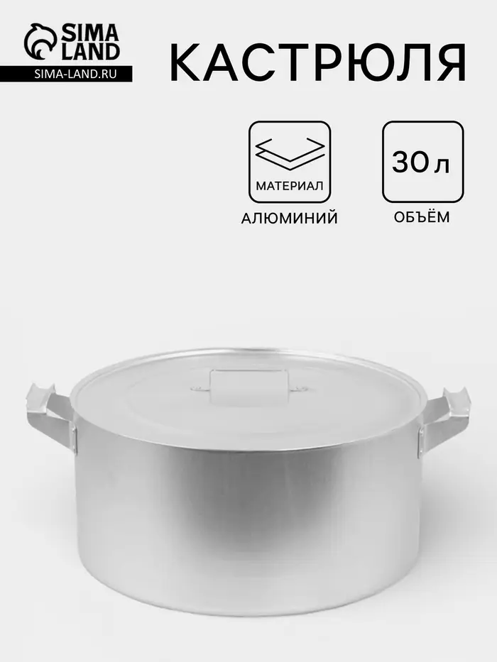 Алюминиевая кастрюля на 30 литров — надёжное решение для приготовления больших объёмов пищи: от наваристых супов и каш до компотов, варенья или рассола для засолки. Подходит для использования в частном доме, на даче, в столовой или при организации мероприятий.