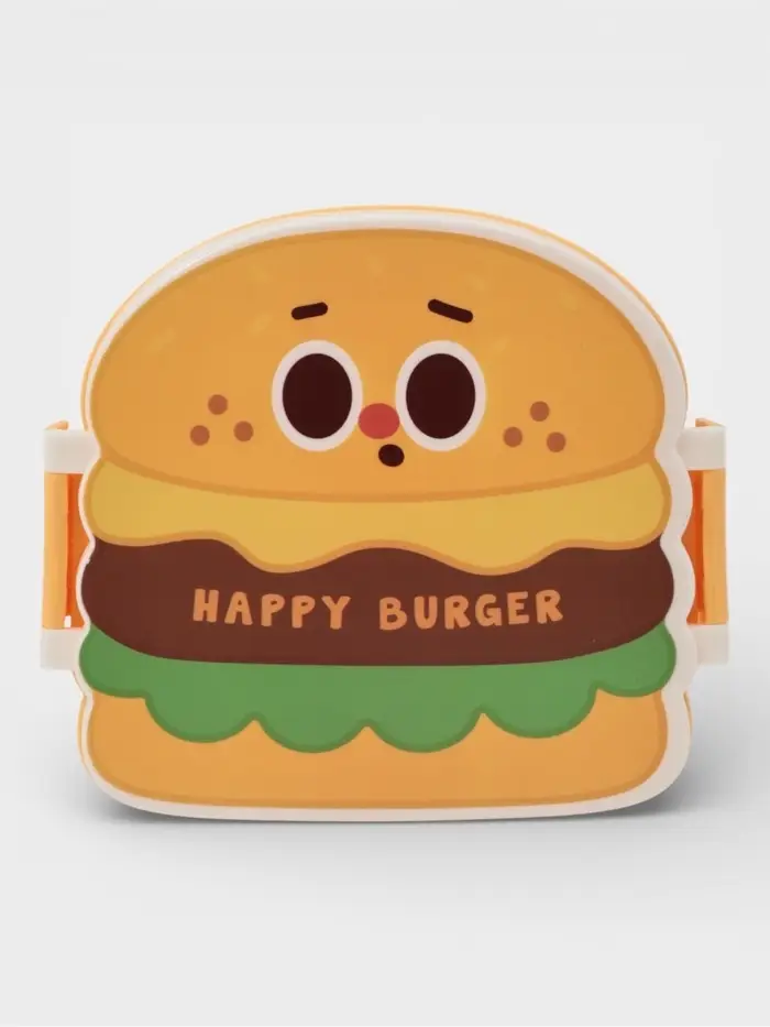 Ланч - бокс, контейнер для еды Доляна «Счастливый бургер», 3 ячейки, с ложкой и вилкой, 17.5×15.5×8 см, пластик, жёлтый