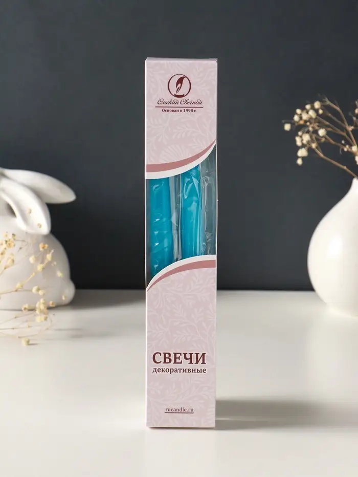 Длинные синие свечи — это готовое декоративное решение. Их пламя придаёт глубину вечернему освещению, а строгие линии форм добавляют интерьеру элегантности. Используйте их парно для симметрии на камине или обеденном столе. Такой набор станет продуманным акцентом или лаконичным подарком, говорящим о внимании к деталям.