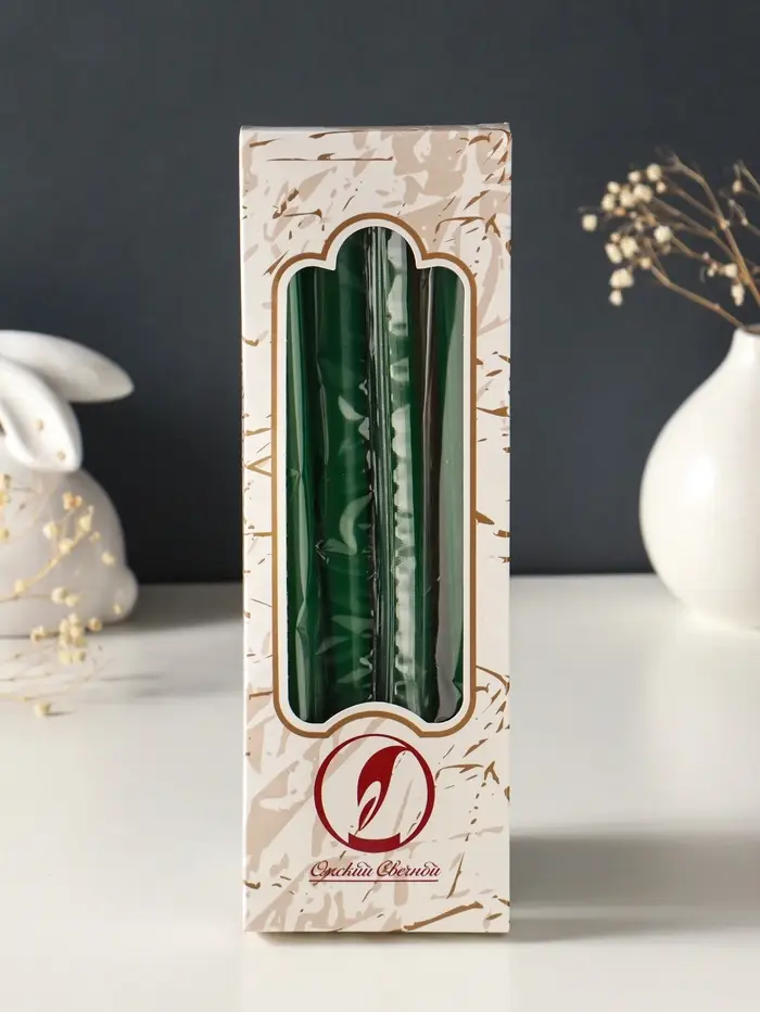 Набор свечей античных, 2,3х 24,5 см, 5 ч, 55 г, 4 штуки, тёмно-зелёный
