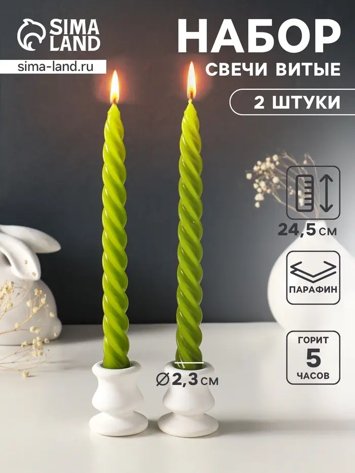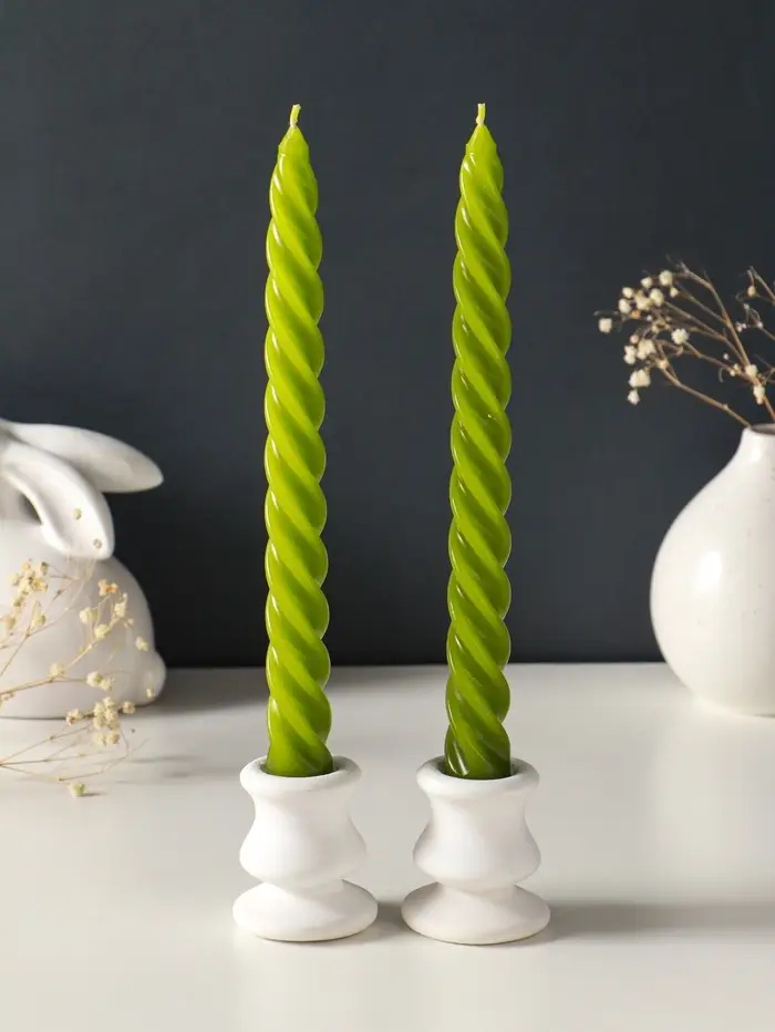 Высокие витые свечи — это готовое декоративное решение. Их стройный силуэт визуально вытягивает пространство, а живой огонь в движении спирали создаёт динамичную и умиротворяющую игру света. Двух часов горения хватает на продолжительный праздник или вечер, а отсутствие аромата делает их универсальным дополнением к любой сервировке и настроению. Такой набор становится акцентом, который не перегружает обстановку, а завершает её.