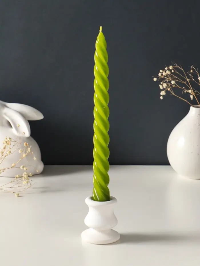 Эти высокие витые свечи создают атмосферу уюта и торжества без лишних слов. Их элегантная спираль и глубокий оливковый оттенок придают интерьеру благородный акцент, идеально подходя как для новогоднего декора, так и для романтического ужина или расслабляющего вечера. Пара свечей в наборе обеспечивает гармоничную расстановку — для каминной полки, обеденного стола или праздничного сервиза.