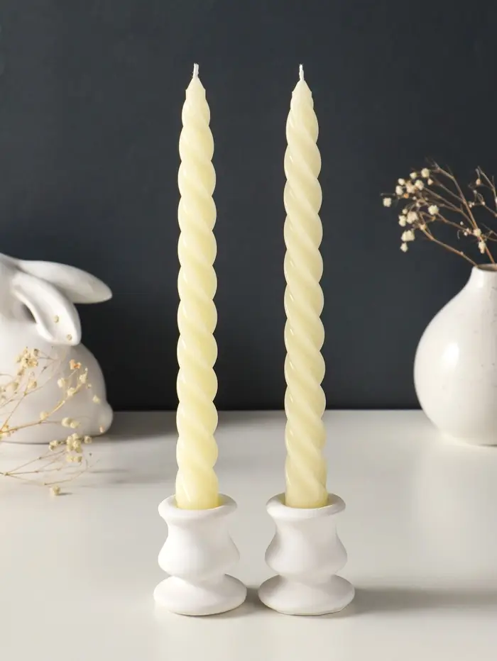 Высокие витые свечи — это проверенный способ добавить событию изысканности и живого света. Их пламя создаёт уютную и сосредоточенную атмосферу, будь то романтический ужин, свадебная церемония или праздничный стол. Установите пару в подсвечники — и мгновенно получите законченный, стильный декор, который говорит о внимании к деталям.