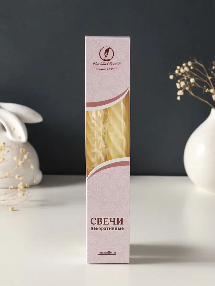 Набор свечей витых, 2.3×24.5 см, 5 ч, 50 г, 2 шт., слоновая кость, в подарочной коробке