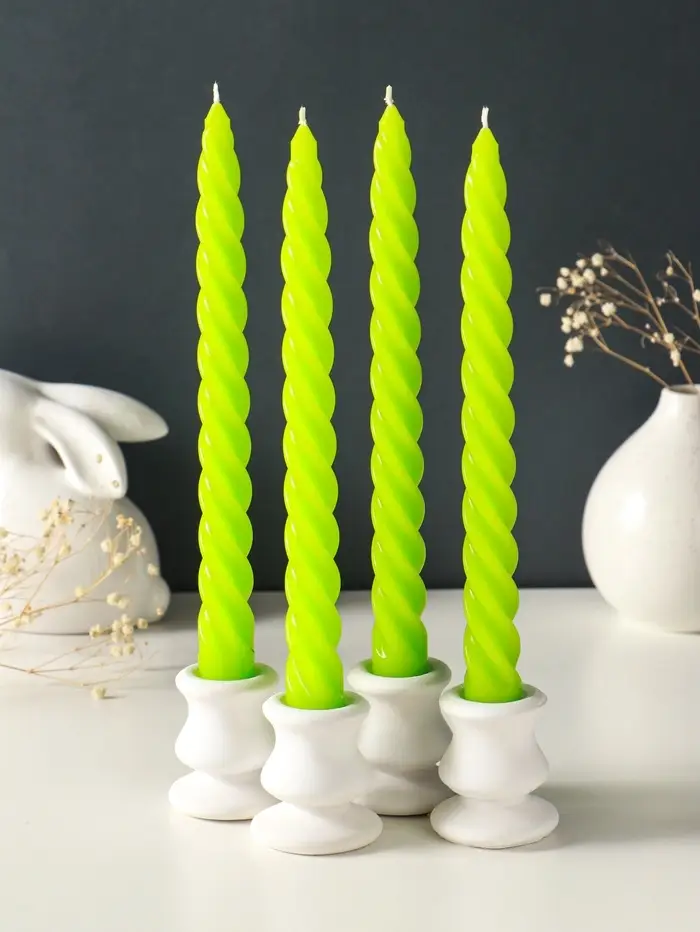 - Четыре одинаковые свечи универсального зелёного оттенка.