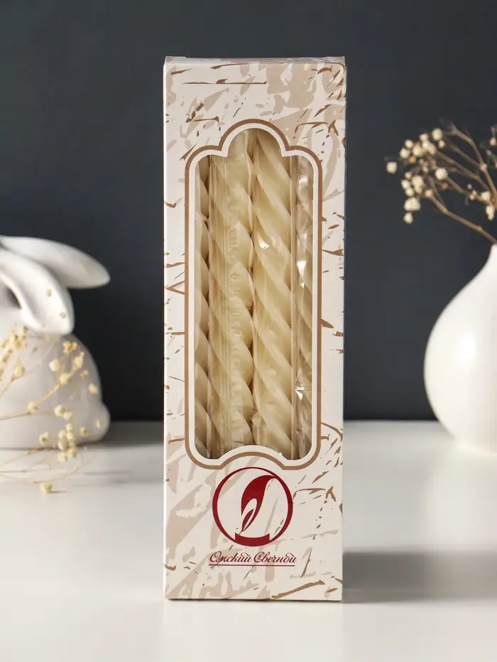 Набор свечей витых, 2.3×24.5 см, 5 ч, 50 г, 4 шт., слоновая кость, в подарочной коробке