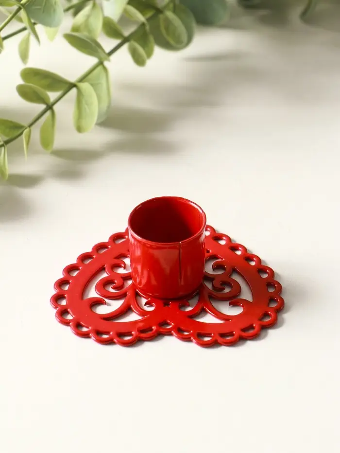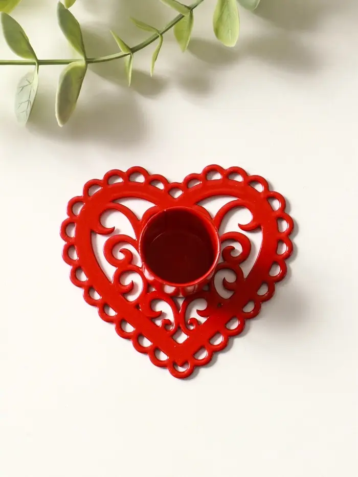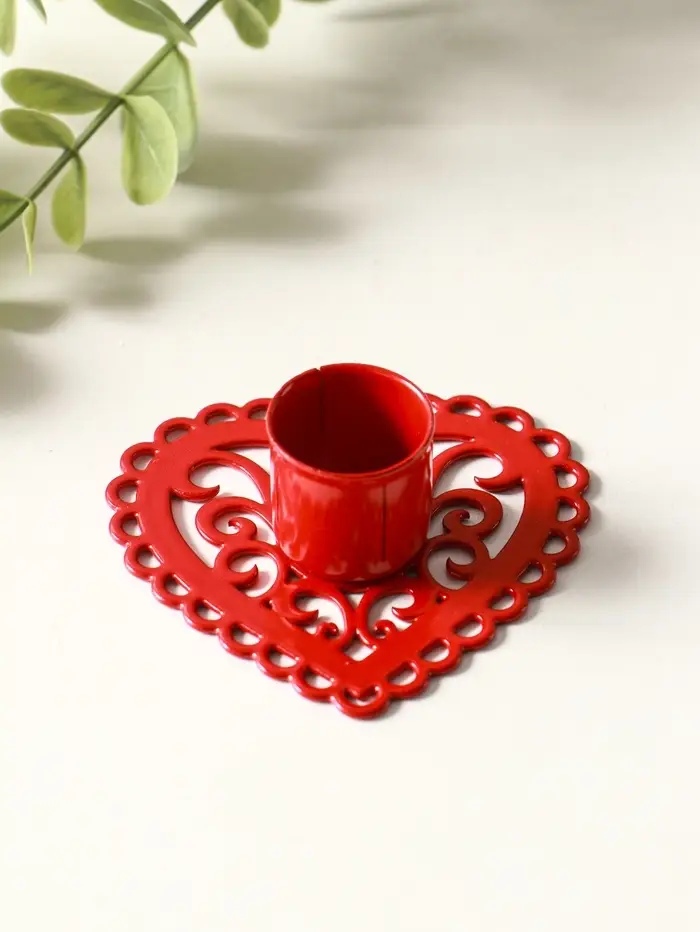 Подсвечник "Сердечко-кружево" металл 7х7,8х2,7 см, красный