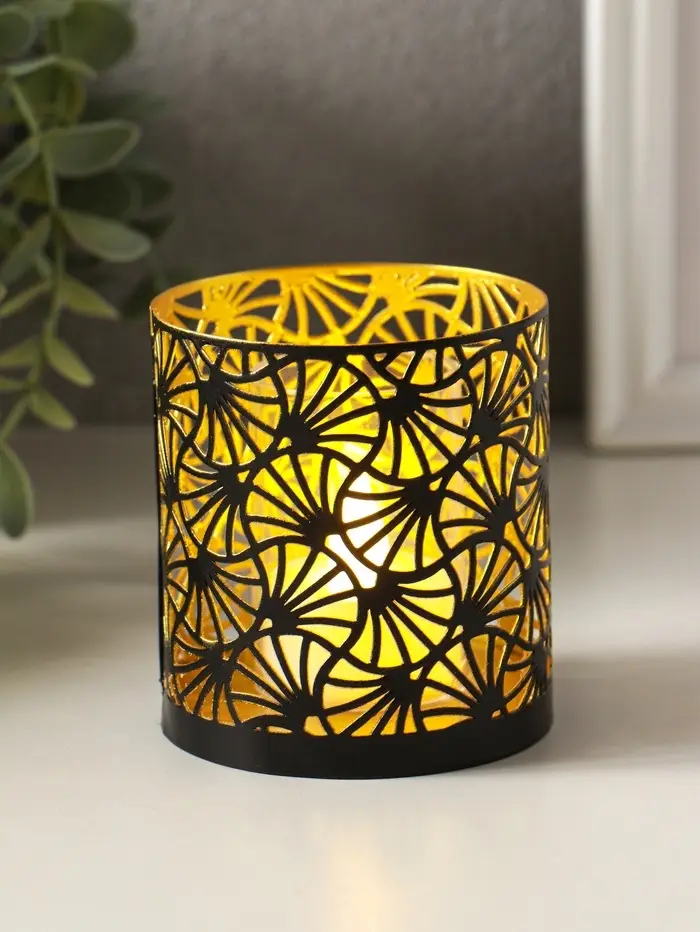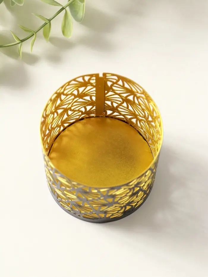Подсвечник "Цилиндр №4" металл 7,5х7,5х8 см, черный с золотом