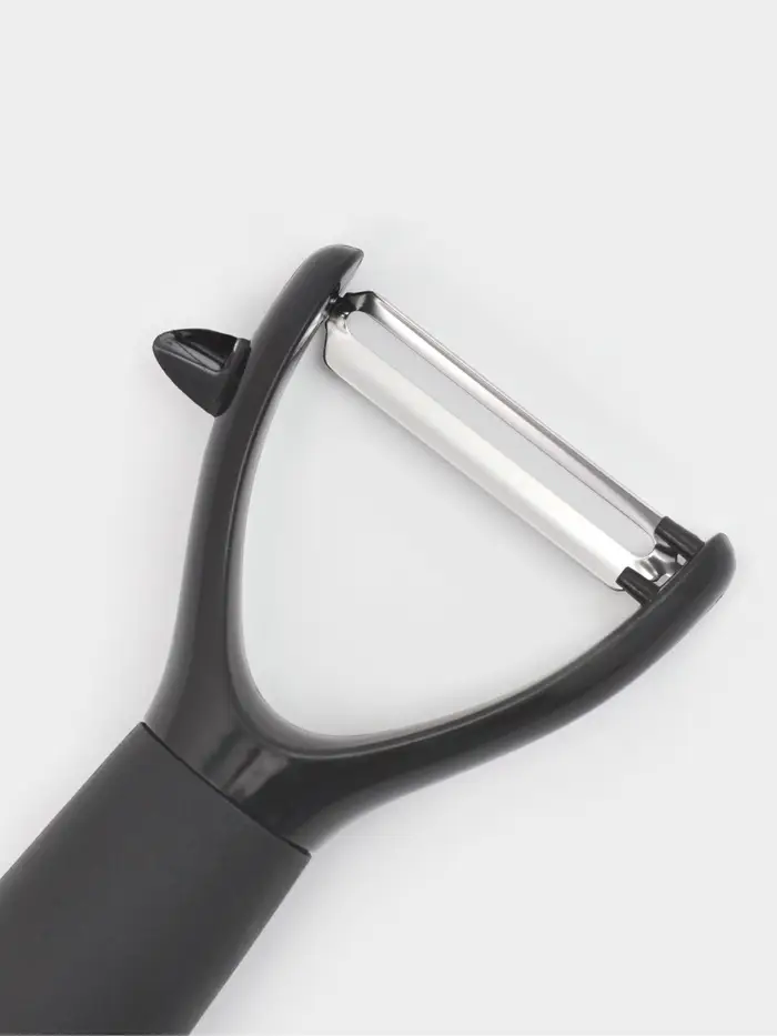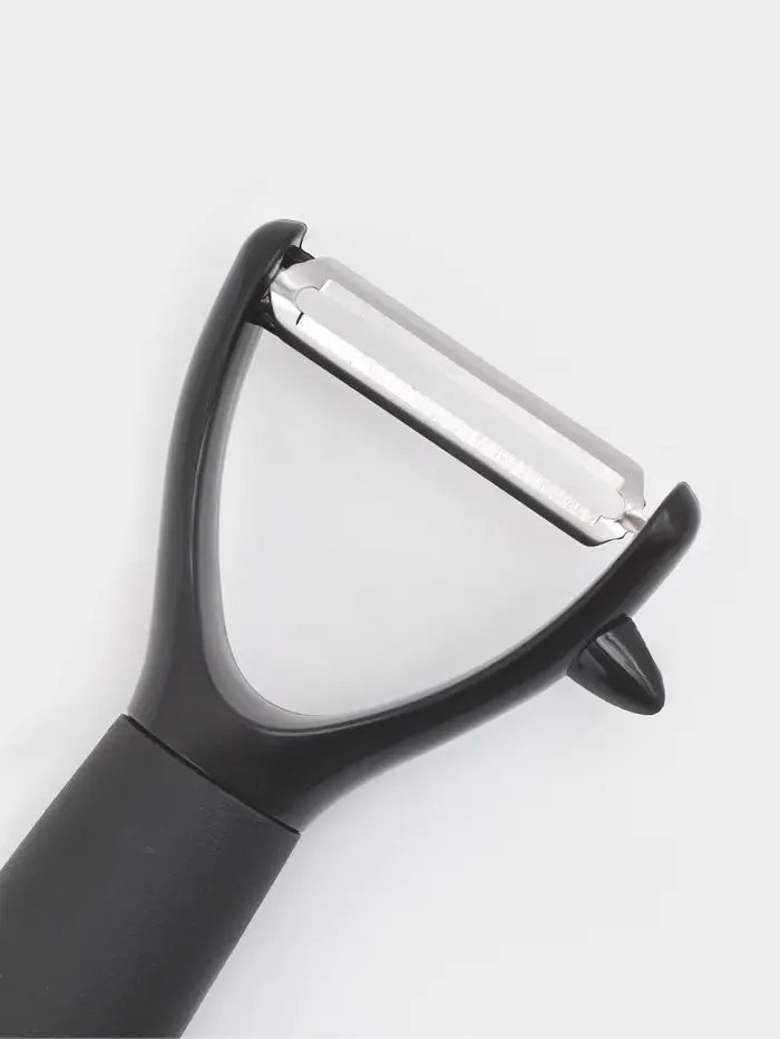 Эта овощечистка экономит время и снижает количество пищевых отходов: кожура снимается тонко, ровно и без лишнего давления. Простая, но продуманная конструкция делает её практичным выбором как для ежедневного использования, так и для больших заготовок. Надёжность, лёгкость и чёрный минималистичный дизайн — всё, что нужно на современной кухне.