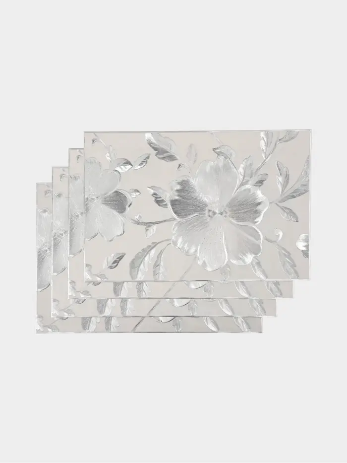 Набор салфеток для стола Доляна «Цветы», 44,5×30 см, 4 шт, ПВХ, цвет серебро