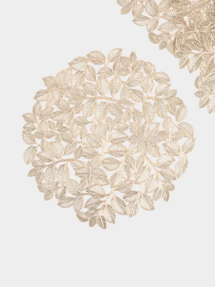 Набор салфетка сервировочных на стол Доляна "Листья", цвет золото, ПВХ, 38х38 см