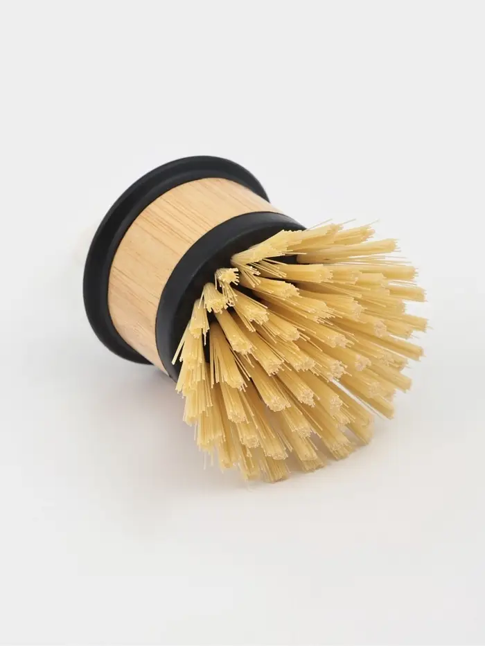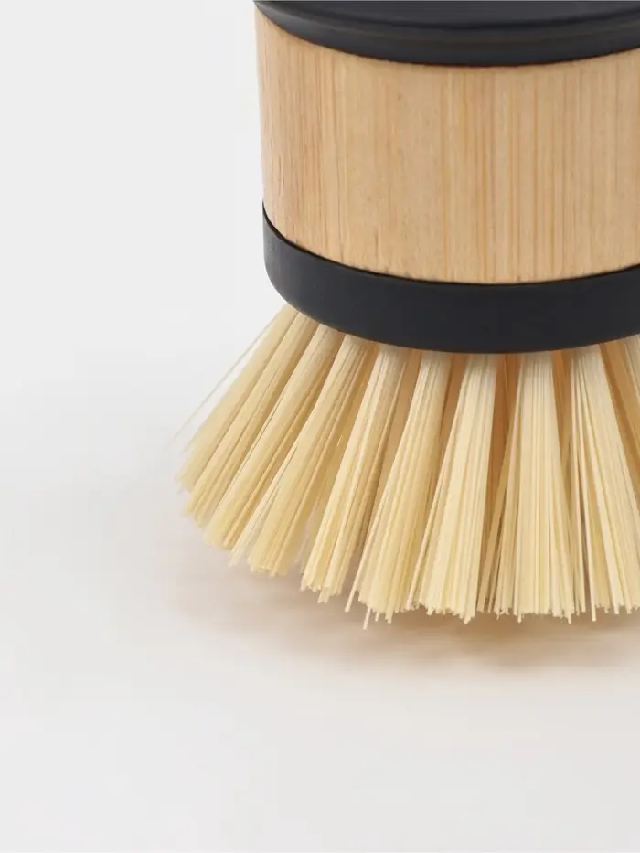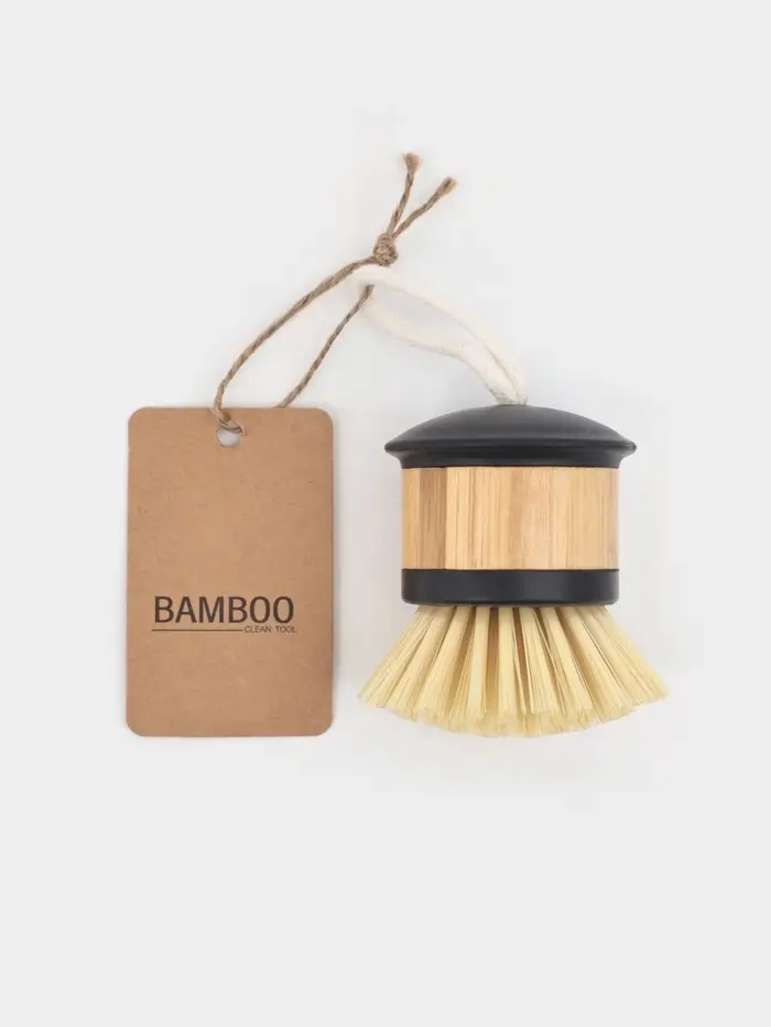 Компактная кухонная щётка с короткой бамбуковой ручкой для мытья небольших предметов. Её небольшой размер и маневренность идеально подходят для очистки чашек, столовых приборов, детской посуды и труднодоступных мест.